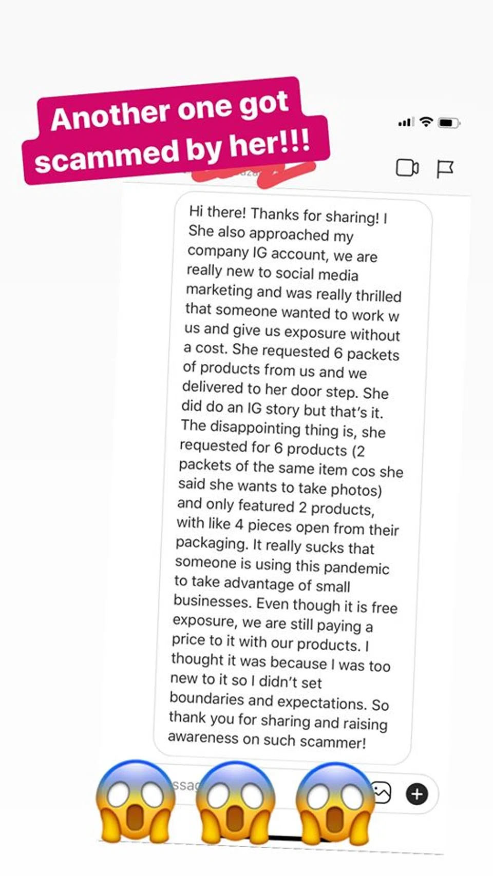 An influencer has responded to allegations by a small business owner who accused her of "reaping freebies with her fake likes/followers".
