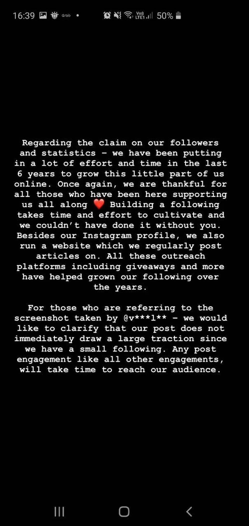 She said that they have been "doing this for six years to grow our reach" and that any increase in growth and engagement can be attributed from "various sources" including articles on their website and hosting giveaways.