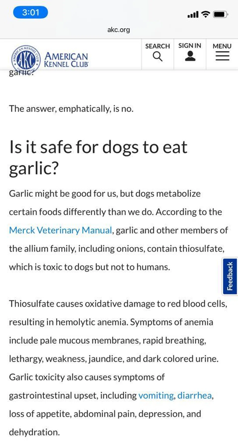 "I tried searching on Google and saw reports that said garlic is not safe for dogs."