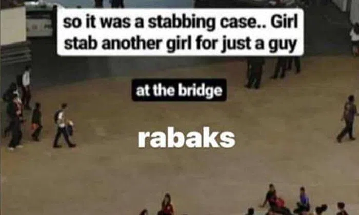 But the dispute between two ITE students turned bloody when Tusheta Saravanan, 18, used a foldable knife to stab Logeswari Natarajah, 17, in the abdomen and slash her left arm.