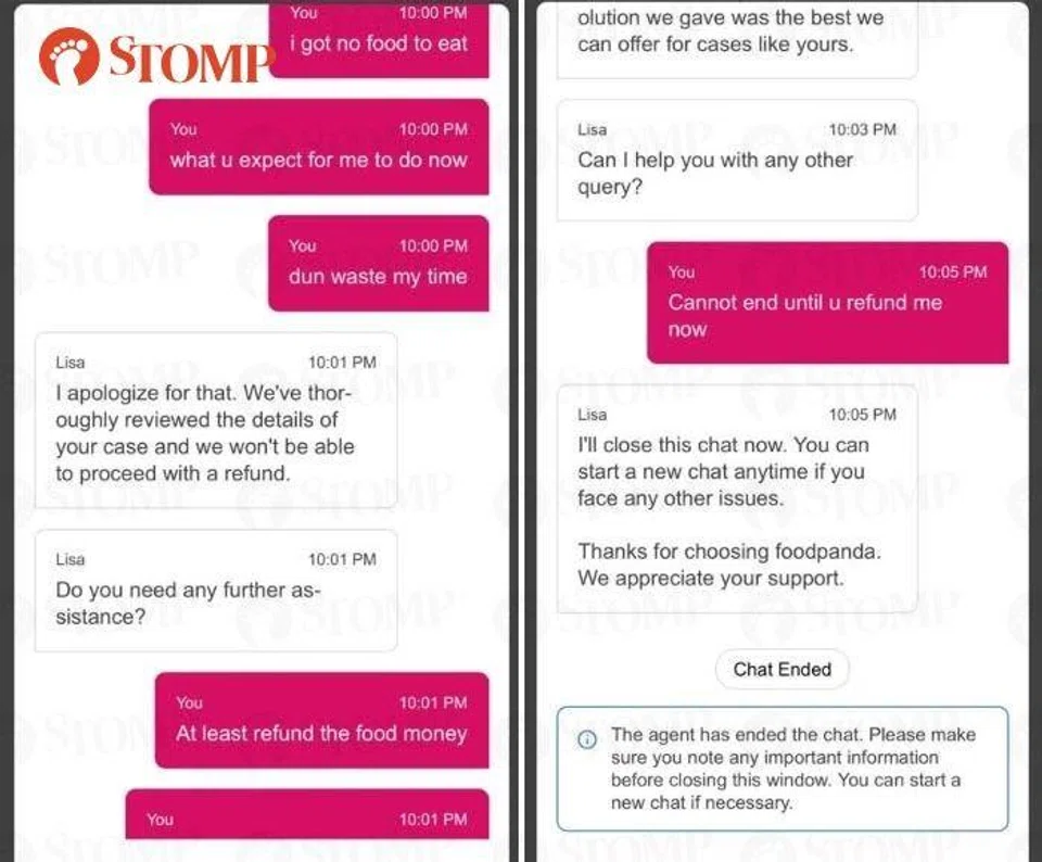 "This led me to contact Foodpanda customer service and I can say I never expected what was about to happen," said the Stomper.
