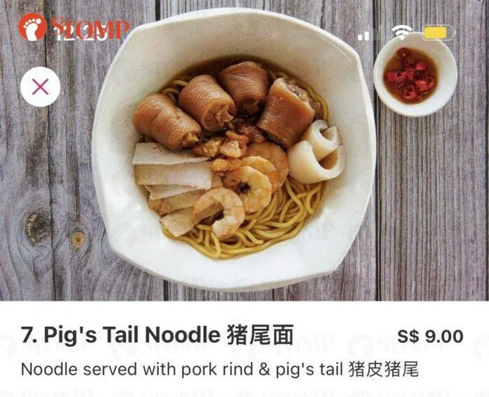 It was the pig's tail noodle, listed as $9 on the Foodpanda.