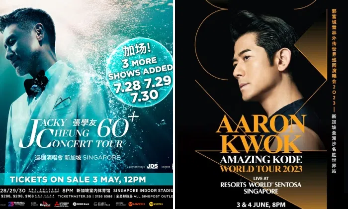 Meanwhile, fellow Heavenly King Aaron Kwok will take the stage at Resorts World Sentosa for two shows on June 3 and 4 at 8pm, as part of his Amazing Kode World Tour 2023.