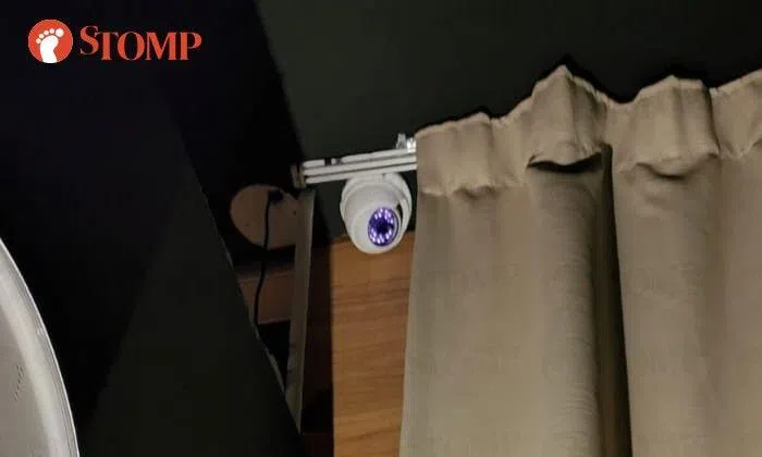 The customer told Stomp: "The camera was hung next to the curtain hence making it less visible. Customers entering the room will not be able to see it unless they flip the curtain."