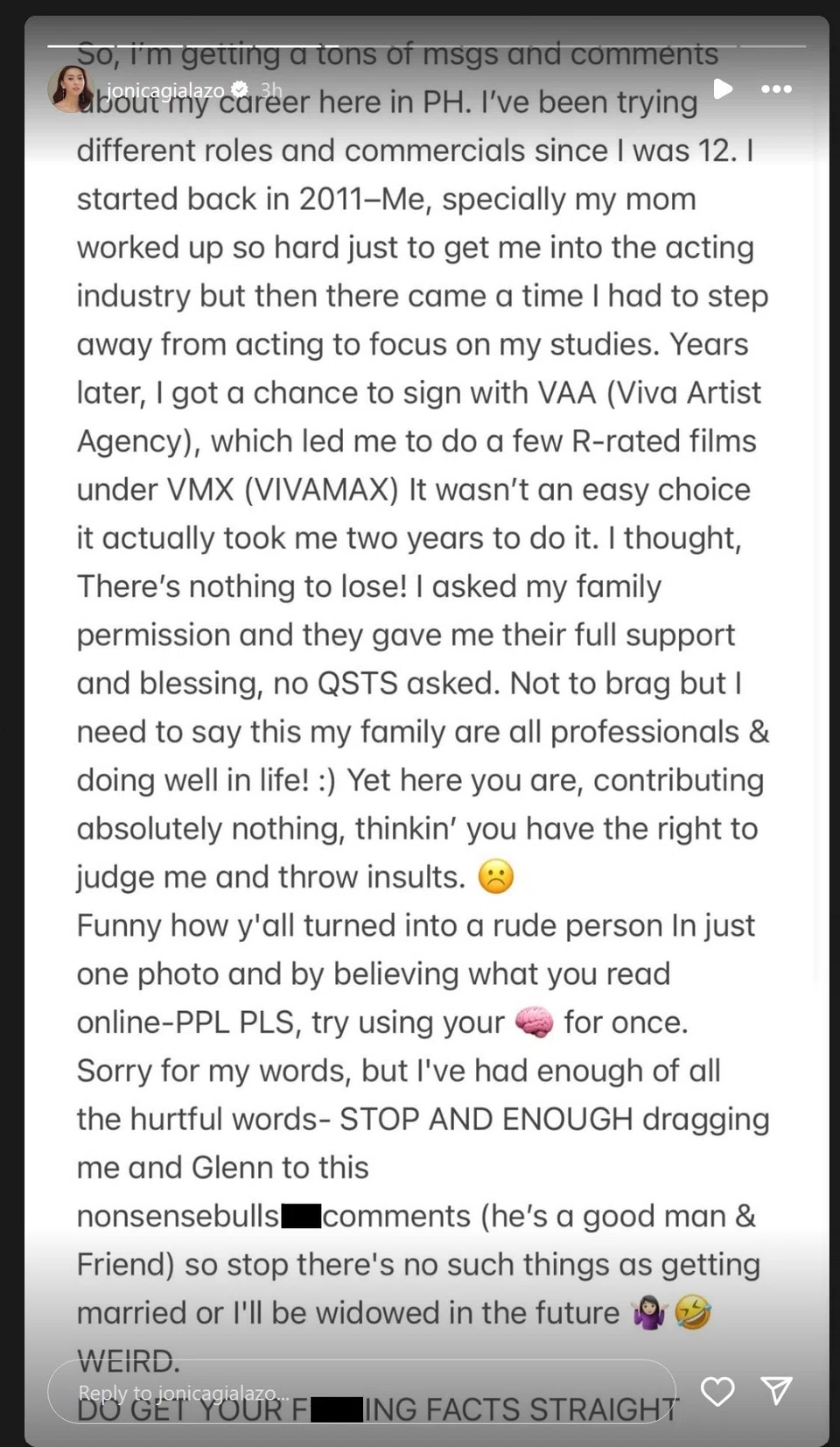 Jonica Lazo has enough of 'hurtful' comments: 'Stop dragging me and Glenn to this nonsense'