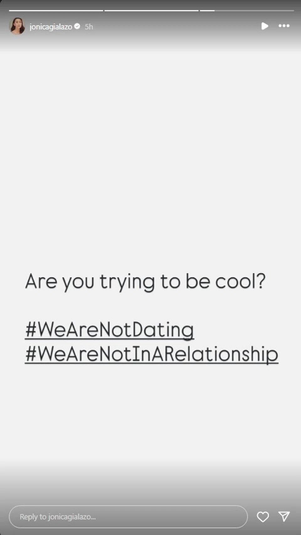 On the same day, Lazo posted that she and Ong are "not in a relationship" but are "good friends".