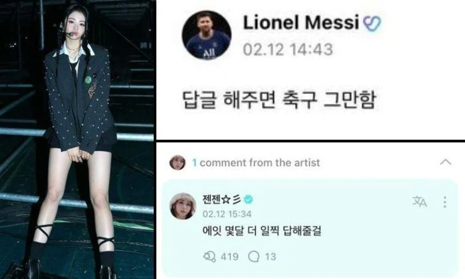 On South Korean fan platform Weverse, an account posing as the legendary player – using his name and a photo of him as his profile picture – wrote to Yunjin: “If you comment, I’ll stop playing soccer.”