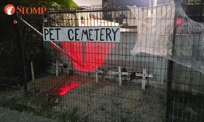 Katong resident sets up creepy 'pet cemetery' in backyard, Stomper not amused