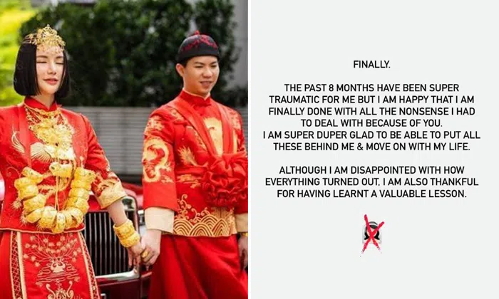 Lim later said: "Looking back now, I think that at that time, I may have been too eager to have a warm home and find a good partner to settle down (with)... I can only blame myself for not getting to know someone well, and everything was decided too hastily."