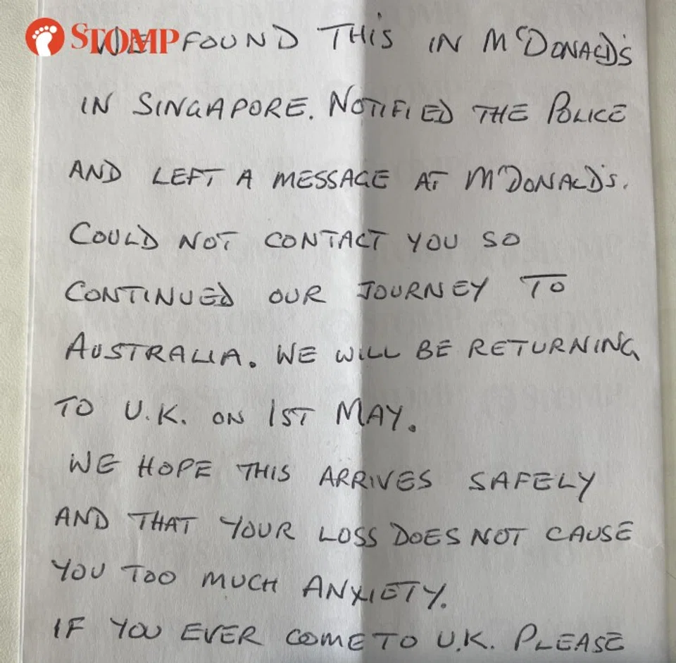 Kind British couple find Stomper's LV wallet at Bugis McDonald's, mail it to her from Australia