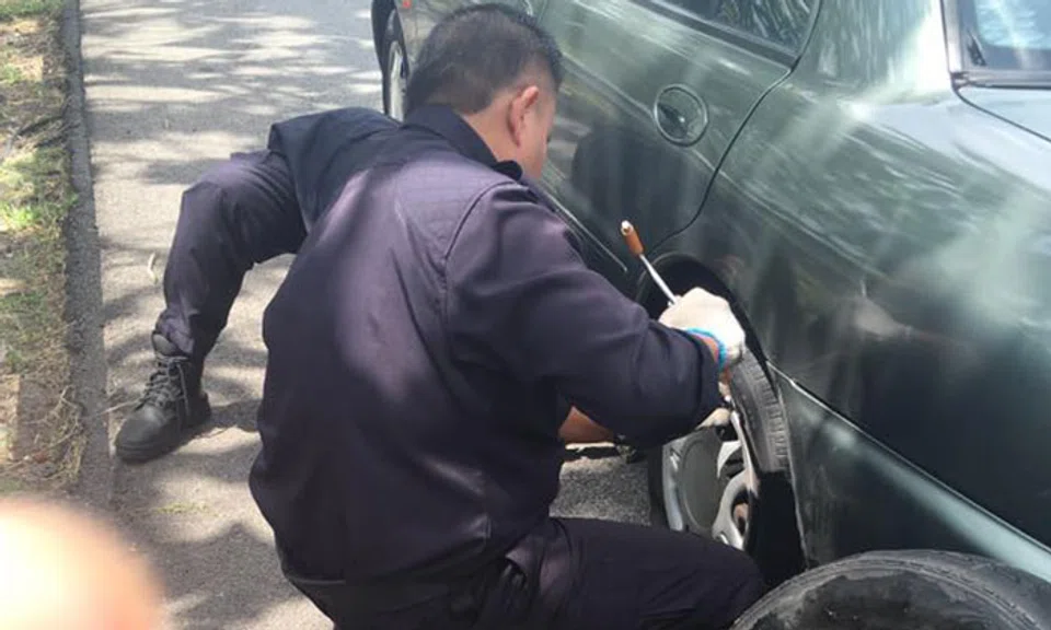 Kind police officers come to the rescue after Malaysian woman's car tyre gets punctured on highway