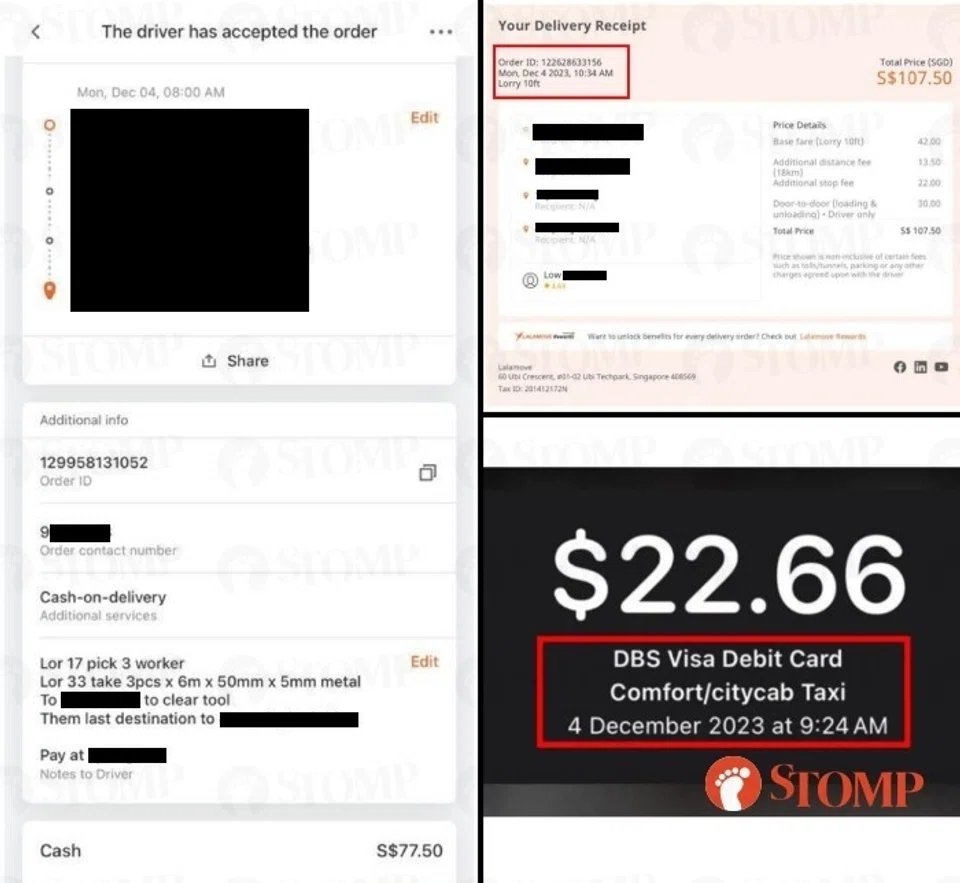 In response to a Stomp query, a Lalamove spokesperson said: "Lalamove is aware of this situation and upon further investigation found that there was a misunderstanding around the size capacity of our delivery vehicles and the measurement of materials that needed to be transported.