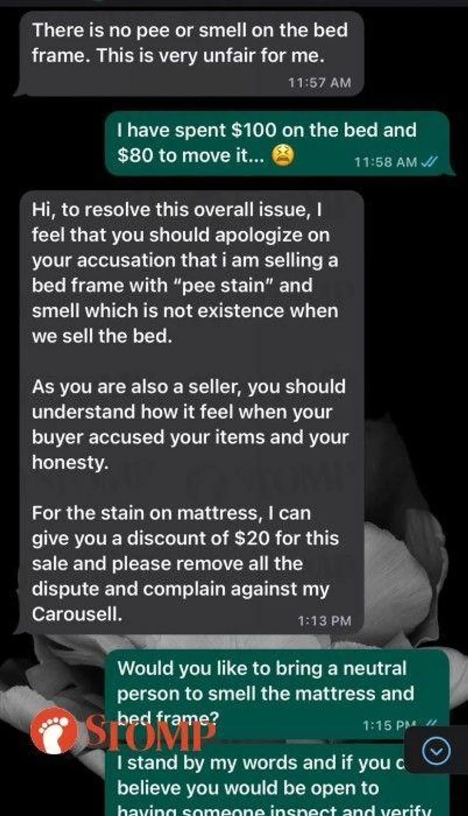 "After sending me the foul nightmare, he wasn’t the least bit ashamed or apologetic. He even wanted me to apologise and he will give me a $20 discount.