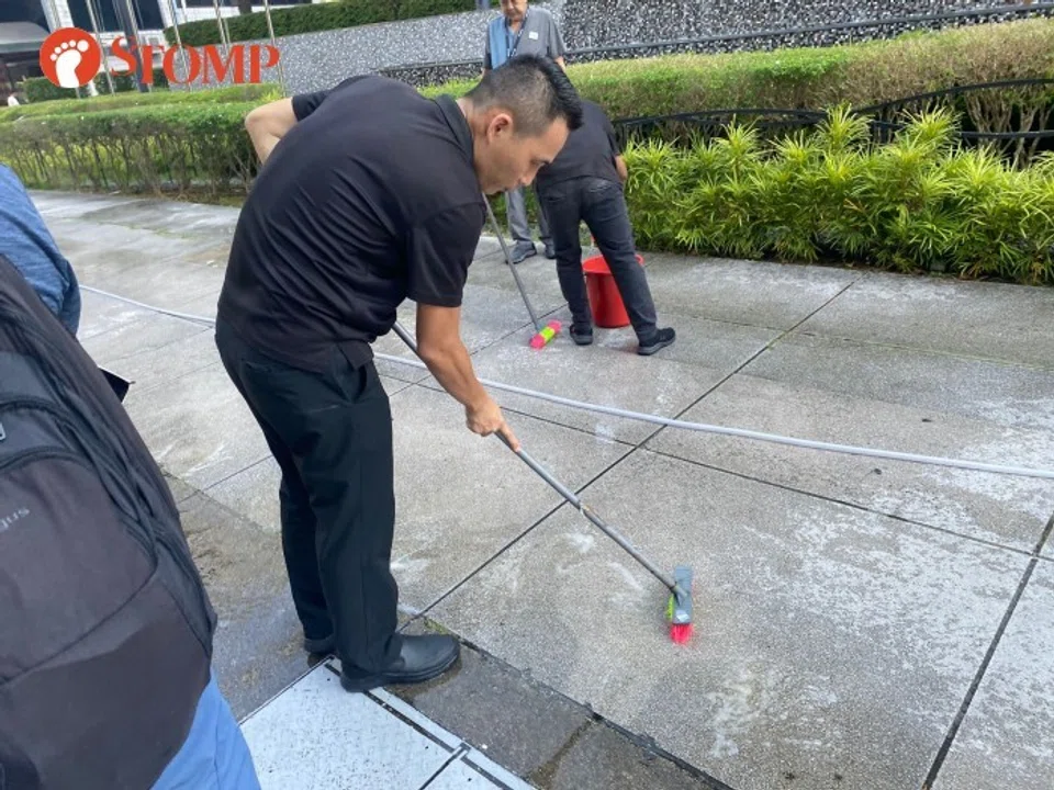 When Stomp visited the area on the afternoon of Sept 22, cleaners were seen scrubbing away the blood stains on the pavement.