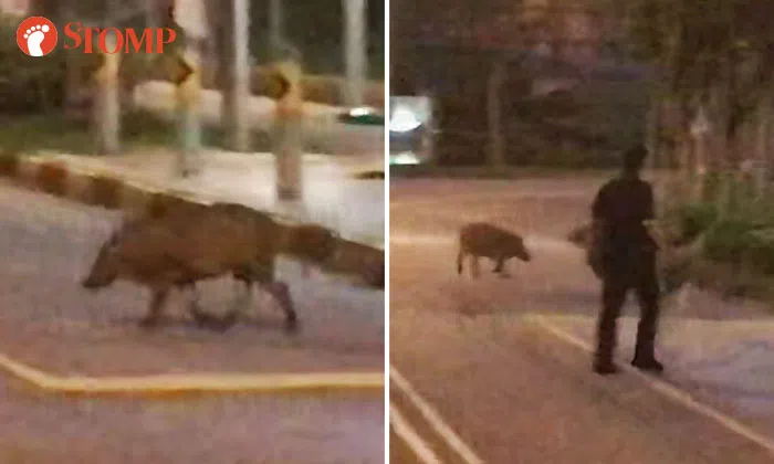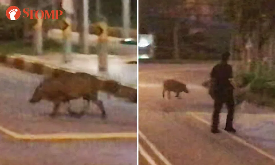 Stomper Abi and her husband Vincent were surprised when they saw a wild boar casually trotting across Choa Chu Kang Street 52 a few times on Tuesday (July 31) at about 6am.