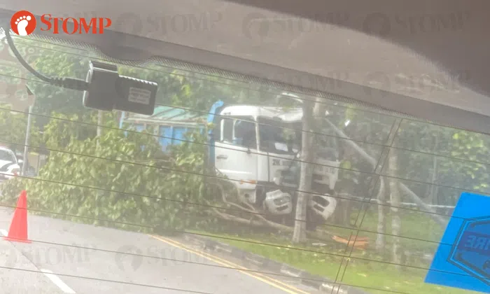 Lorry driver assisting with investigations after crashing into tree at Old Choa Chu Kang Road