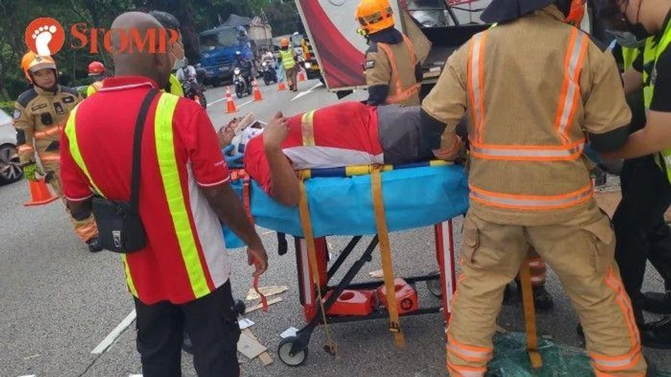 SCDF rescued the driver trapped in the passenger's seat using hydraulic rescue equipment and took him to National University Hospital.