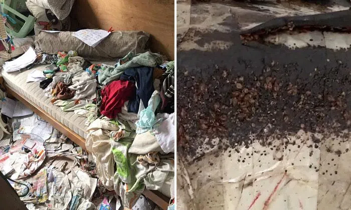 The rental unit was filled with rubbish, with spider webs in every corner. The mattress was covered with faeces, and had maggots and bugs crawling all over it.