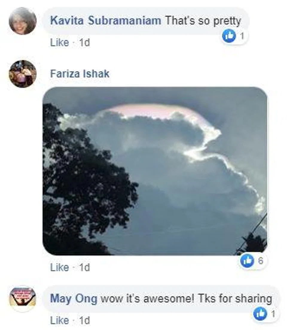 Several Facebook users shared photos and videos of the clouds with aurora-like lights shining out from behind them in The Republic of Bangsar #TROB's Facebook group page.