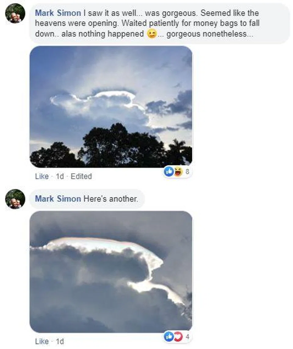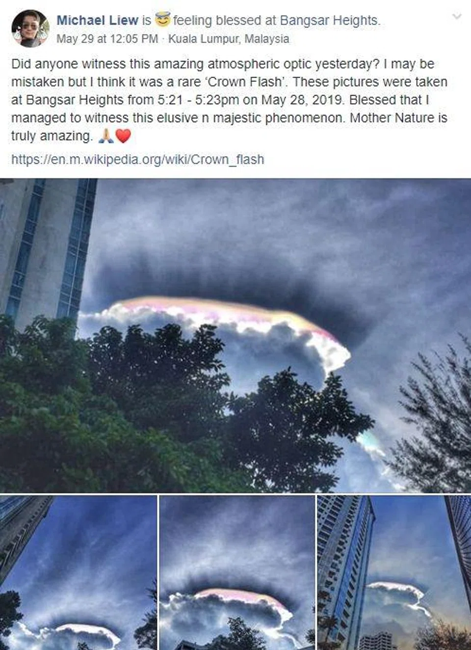 One member, Michael Liew, shared his own stunning photos of the event and suggested that a rare weather phenomenon known as a crown flash could have caused the event.