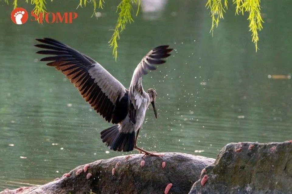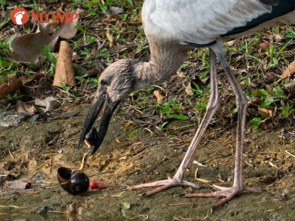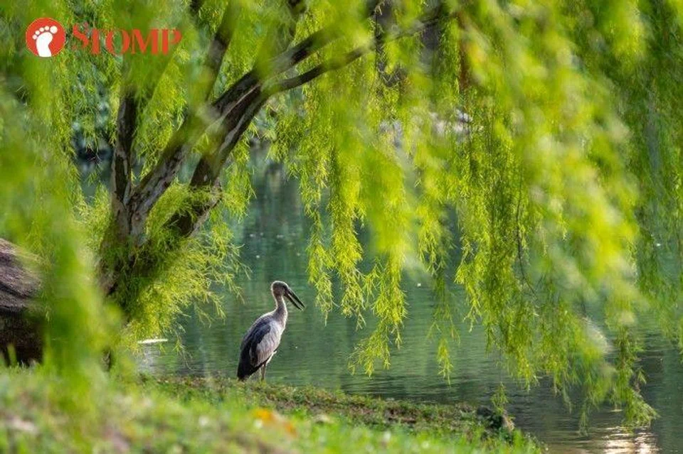 The bird, identified as an Asian openbill stork, was seen at Bishan Park 1 last week.