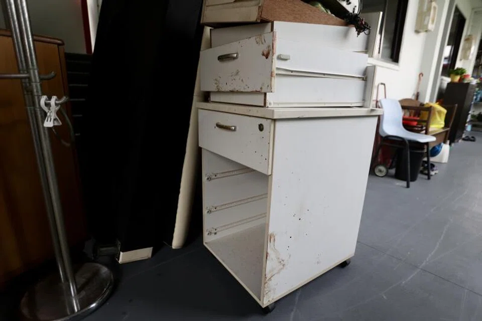 When The Straits Times visited the family's home no one answered the door. Furniture from the flat - including a cabinet stained with blood - was being disposed of by contractors earlier that afternoon.