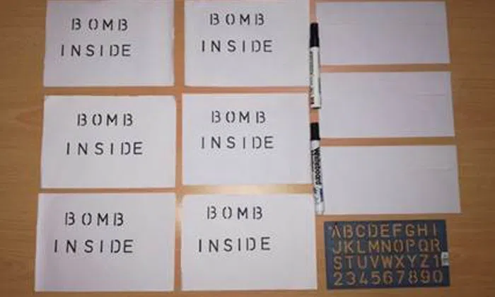 Preliminary investigations revealed that the man is suspected to have sent out at least five such envelopes with similar bomb threats, but had no intention or means to carry out his threats.
