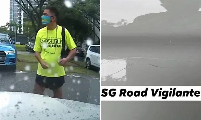 Facebook page SG Road Vigilante posted a video showing a man at the scene and approaching the car, which was subsequently found with multiple scratches on it.