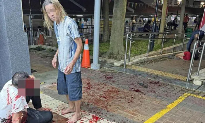 "I saw a young man take out a knife and chase a man wearing a white top and black pants. There was a trail of blood, and the victim was bleeding from his head, neck and chest. Thankfully, some people called the police," Mr Fan added.