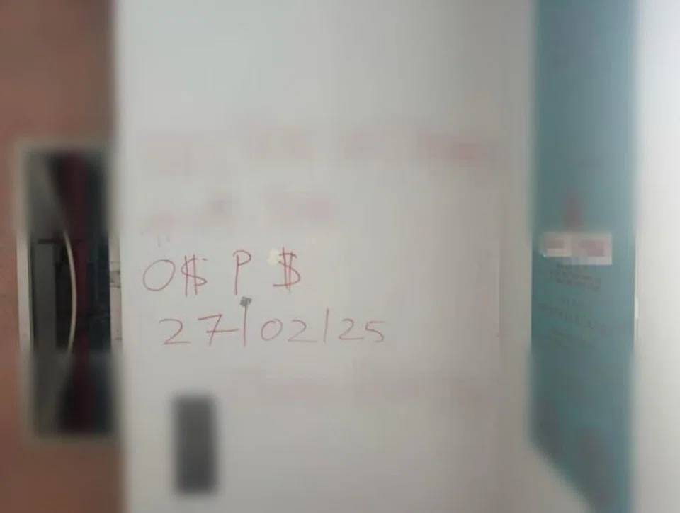 The wall at the lift lobby near the unit was also scribbled with loanshark-related graffiti.