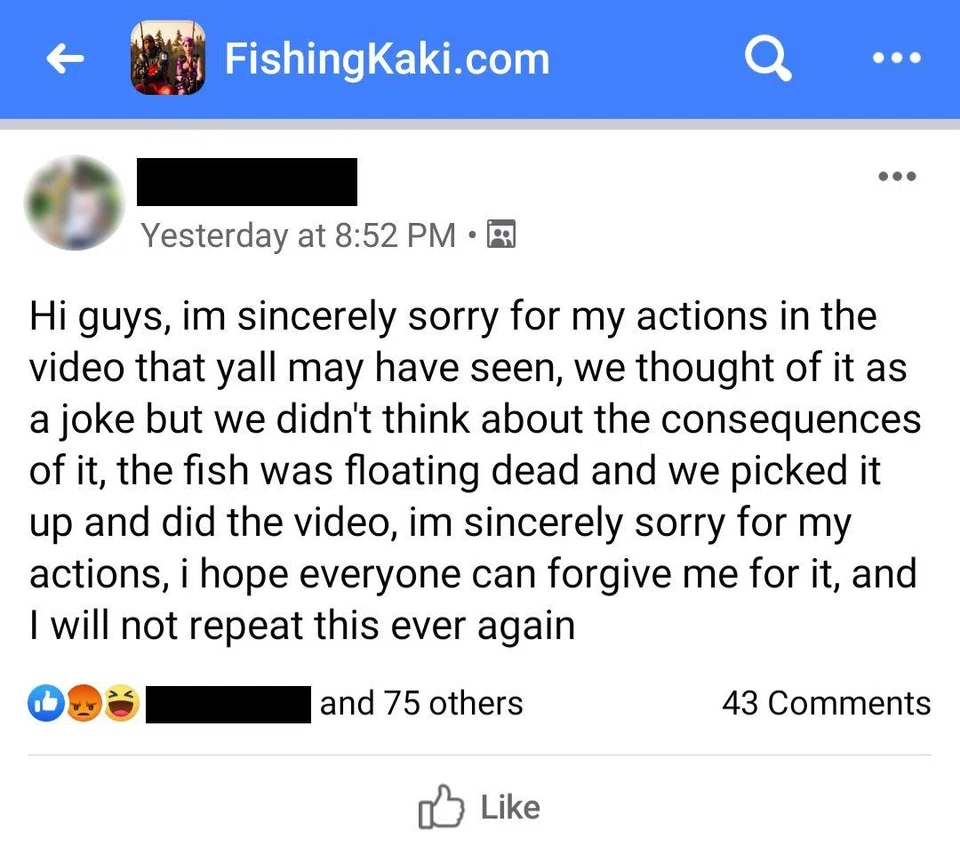 A man who was seen forcefully throwing a fish into the water has apologised for his actions after a video of the incident drew flak online.