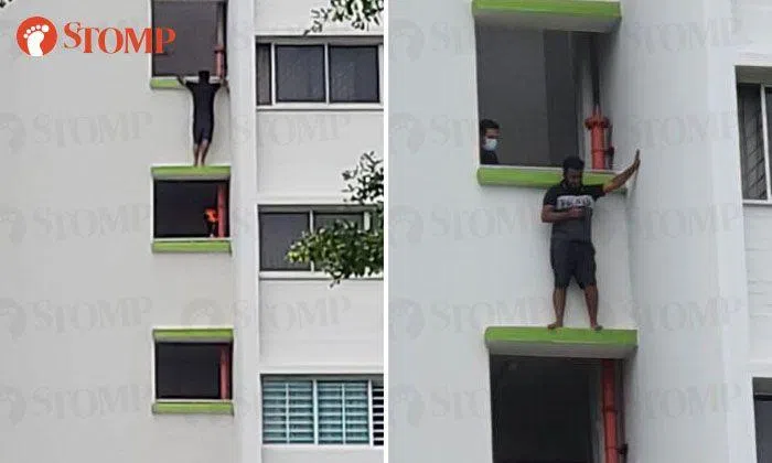 A 35-year-old man was apprehended after he was seen standing on a ledge between the 9th and 10th storey of Block 356 Yishun Ring Road on Monday afternoon (May 24).