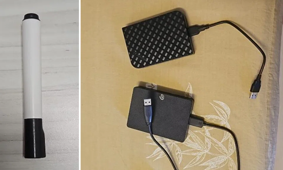 A marker, a mobile phone and two storage devices were seized as case exhibits.