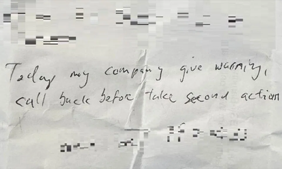 Man arrested after leaving debtor's note outside Yishun unit: 'Today my company give warning...'