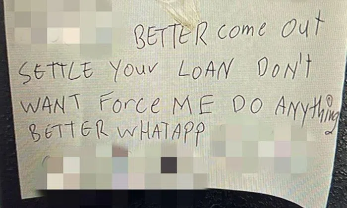 The police said they had been alerted on July 3 to to a case of loanshark harassment along Woodlands Drive 14, where a debtor’s note was placed on the main door of a residential unit.