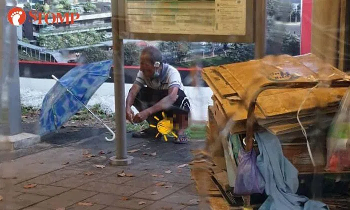 A man was seen squatting down to defecate at a bus stop along Serangoon Road on Monday morning (Oct 19).