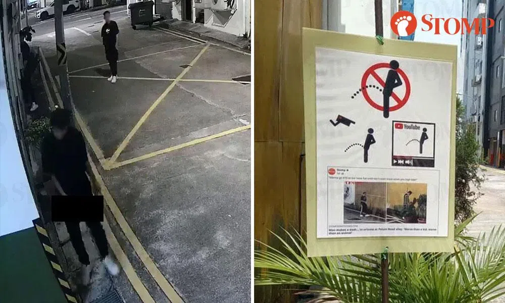 Some men were caught on camera urinating at Petain Road late on Aug 7 and in the early hours of Aug 8, just metres away from a sign telling people not to relieve themselves there.
