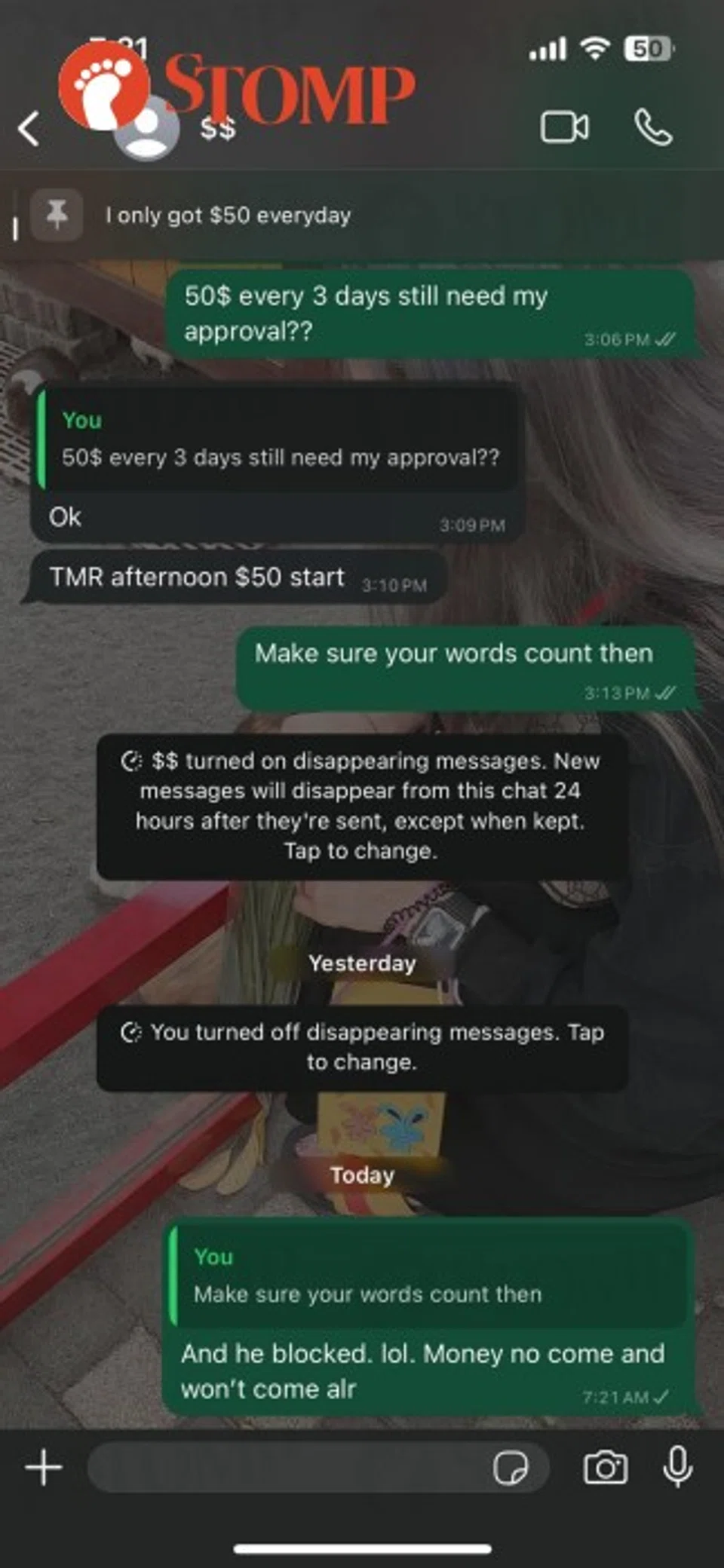 According to the Stomper, her ex-boyfriend subsequently turned on the disappearing messages function on WhatsApp and later blocked her.