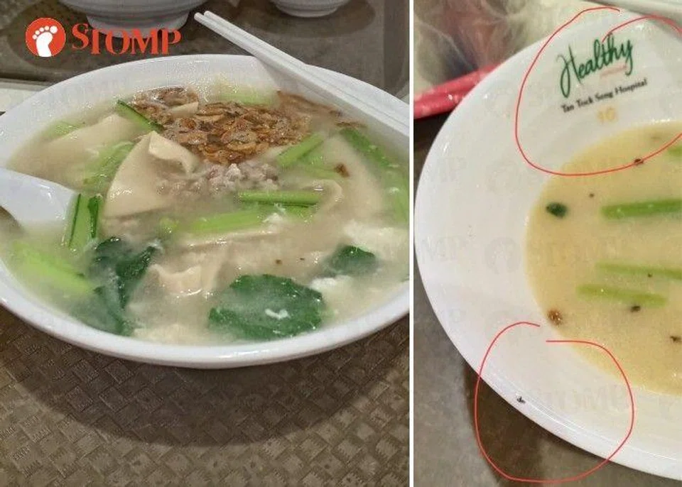 Diner disgusted to find insect after almost finishing his ban mian soup from hospital foodcourt stall