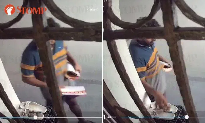 A man distributing flyers in Punggol was caught on camera taking a pack of cigarettes that did not belong to him.