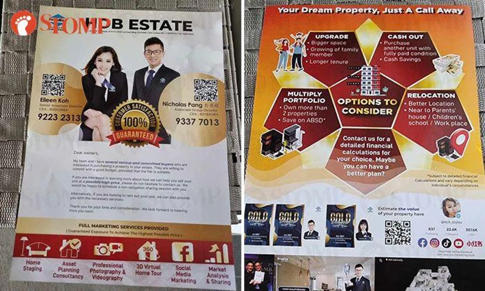 He believes the man was distributing flyers for property agents at Block 325B Sumang Walk.