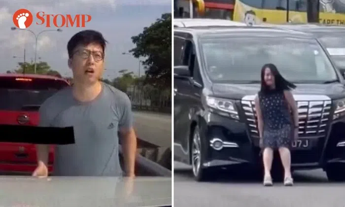 A man was caught on video using his body to block a car at the Tuas Second Link to let another car cut into the lane in a traffic jam on Sunday afternoon (Oct 8).