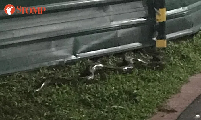 In photos Alvin shared with Stomp, a python is seen on the grass, next to a construction site.