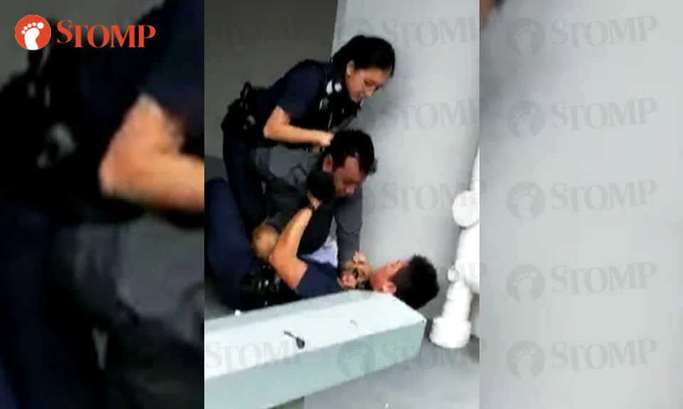 A Stomper alerted Stomp to a video of a scuffle between two police officers and a man at the void deck of Block 210A Bukit Batok Street 21 at about 12pm on Monday (Jul 30).