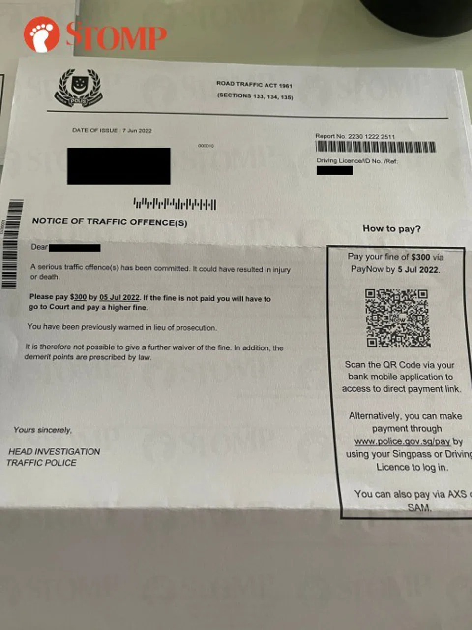 Lim recounted: "I was checking my letterbox at around noon on June 15 and found three letters addressed to my name. Two were from the Land Transport Authority (LTA) and one was from the Traffic Police (TP)."