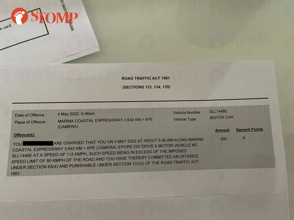 The summons stated that Lim was going at a speed of 112km/h along the Marina Coastal Expressway (MCE), which comes with a $300 fine and eight demerit points.
