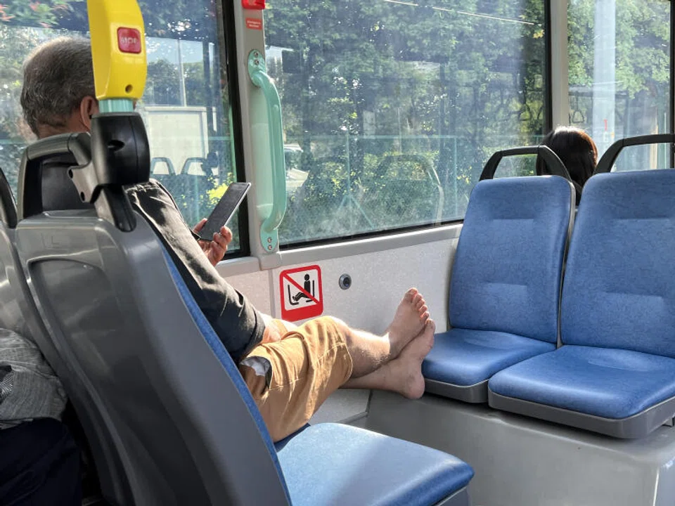 Unlike in Singapore, putting up one's feet on public transport in certain cities in countries such as the United States, Canada, Australia and France will result in a fine.