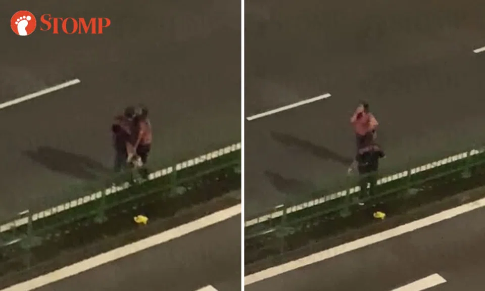 A Stomper alerted Stomp to the incident and shared photos and video clips of the couple arguing in the middle of the road before moving to a bus stop shelter.