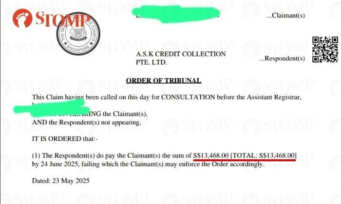The Stomper shared a copy of a May 23 order from the tribunal, requiring Ask Credit Collection to pay him $13,468 by June 24.
