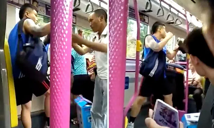 In the video posted on Fabrications About Singapore's Facebook page, the first man sporting a blue sports attire is first seen hurling vulgarities at the other man who is off-screen.